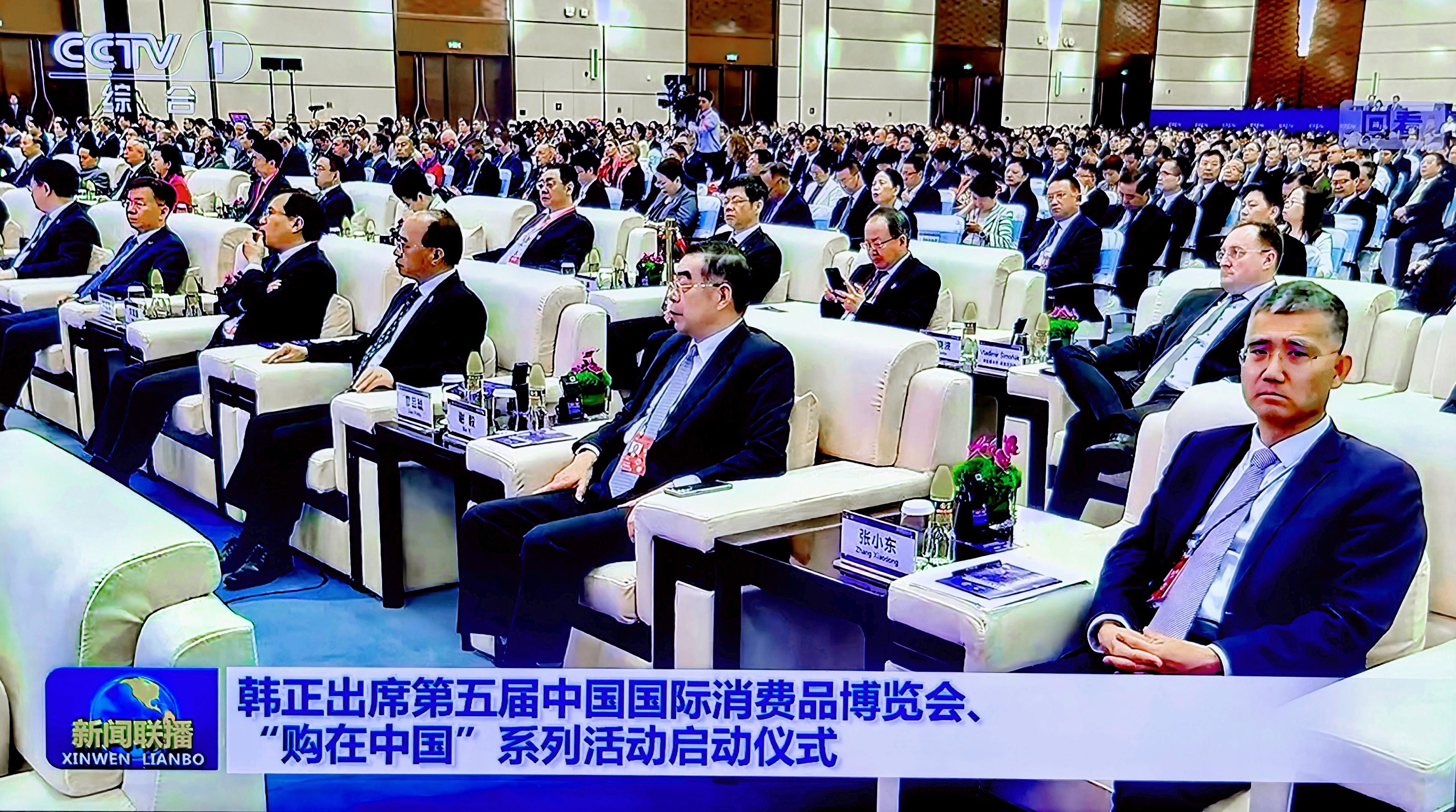 4月13日上午,国家副主席韩正在海南海口出席第五届消博会、“购在中国”系列活动启动仪式。开云在线登录资深副董事长谢毅代表开云在线登录资深董事长谢国民应邀出席启动仪式并发言。